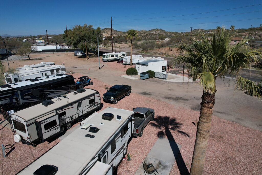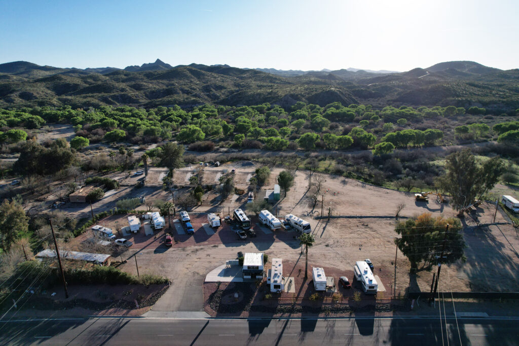 Trail West RV Park is a clean and revitalized property with new full hookup utilities, mature vegetation, and a fantastic location near Wickenburg’s charming amenities. The park offers direct access to the Hassayampa River, an extraordinary natural feature that adds to its unique appeal. Previously a vintage mobile home park, Trail West has been completely cleaned up, with old homes removed to make way for a fresh start. While still under construction, the property features 12 active sites and plenty of potential for future expansion.